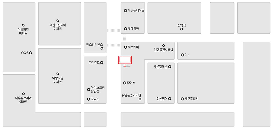 병원, 식당, 학원 등 밀집구역으로 유동인구가 많은 곳