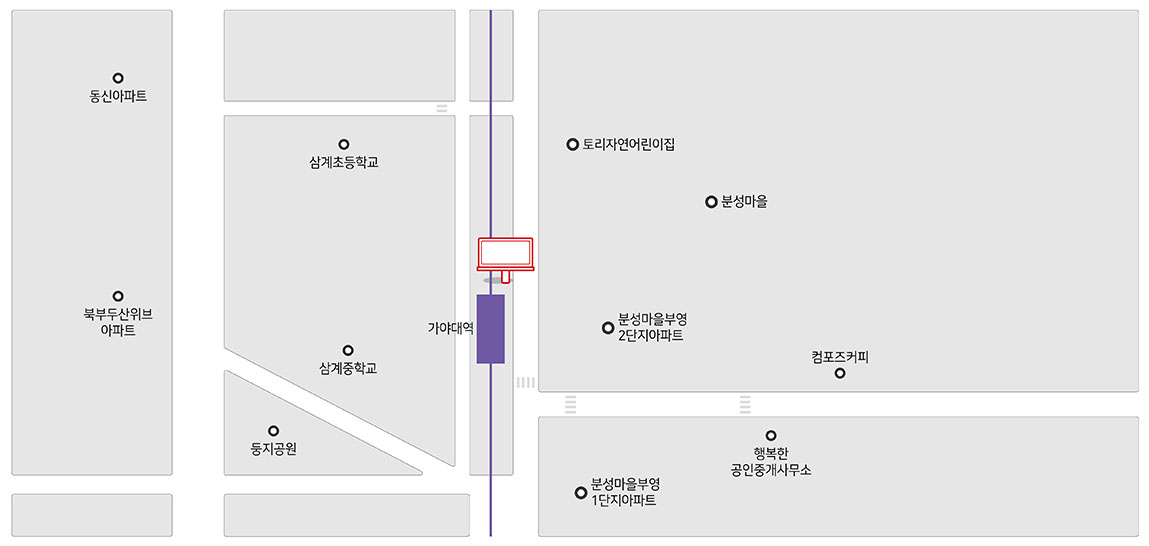 가야대, 장신대, 대형할인마트, 식당가 형성으로 유동인구가 많은 곳
